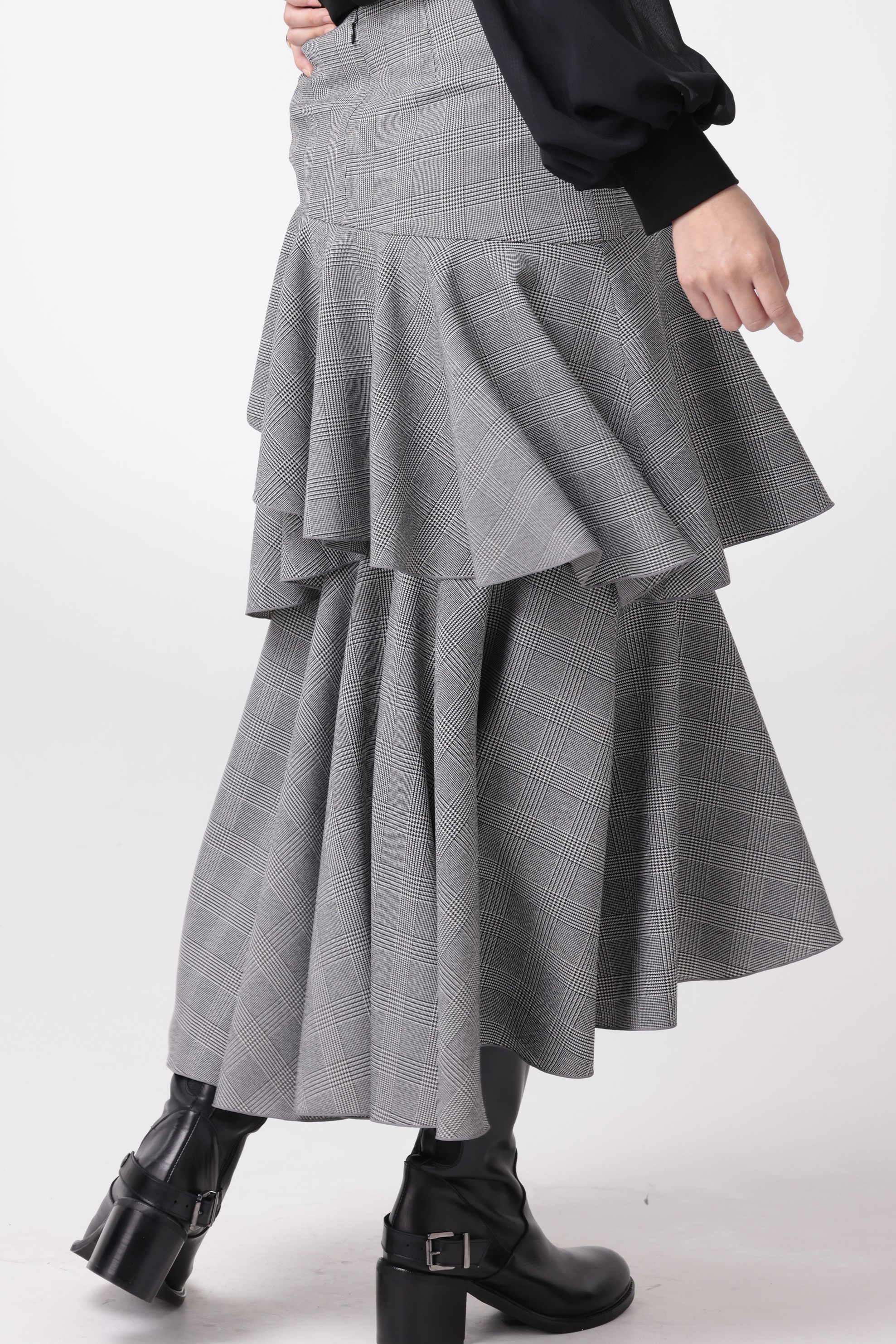 グレンチェックフリルスカートでクラシカルなエレガンスをプラス。