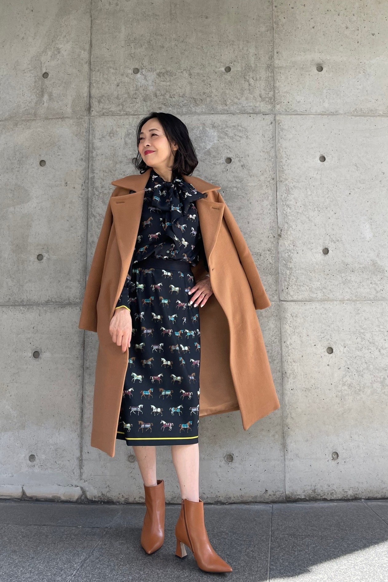 キャメルコートは落ち着いた色味でありながら季節感をしっかりと演出し、