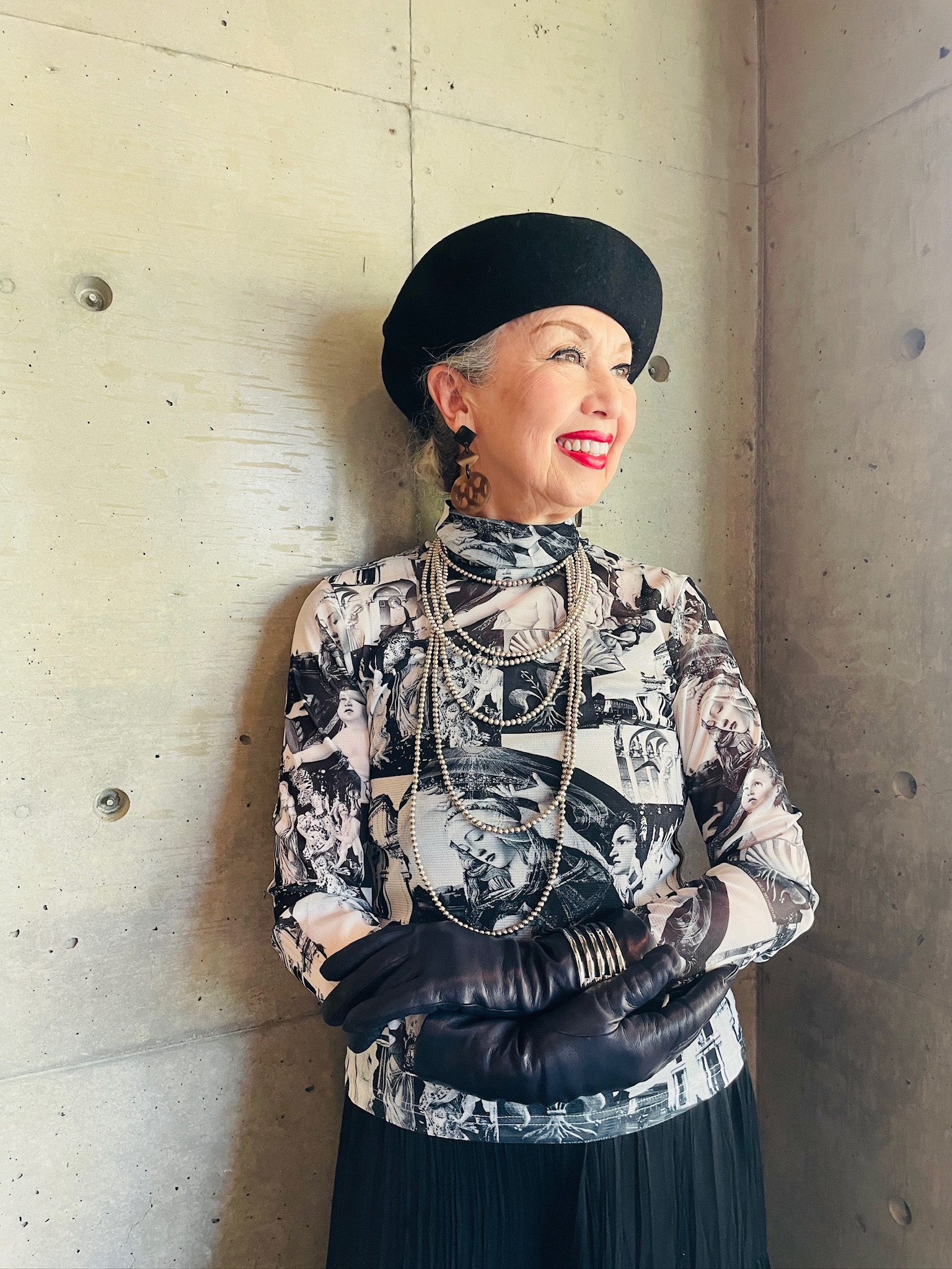 ハットやパールを添えて、クラシックな華やぎをプラス。
