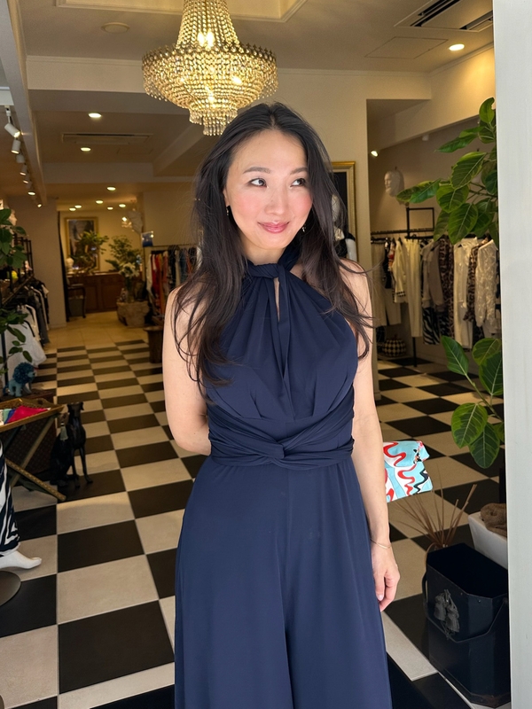 立体的なカシュクールデザインが自然なドレープを生み、洗練されたシルエットを描きます。