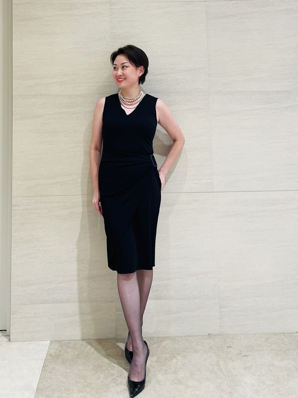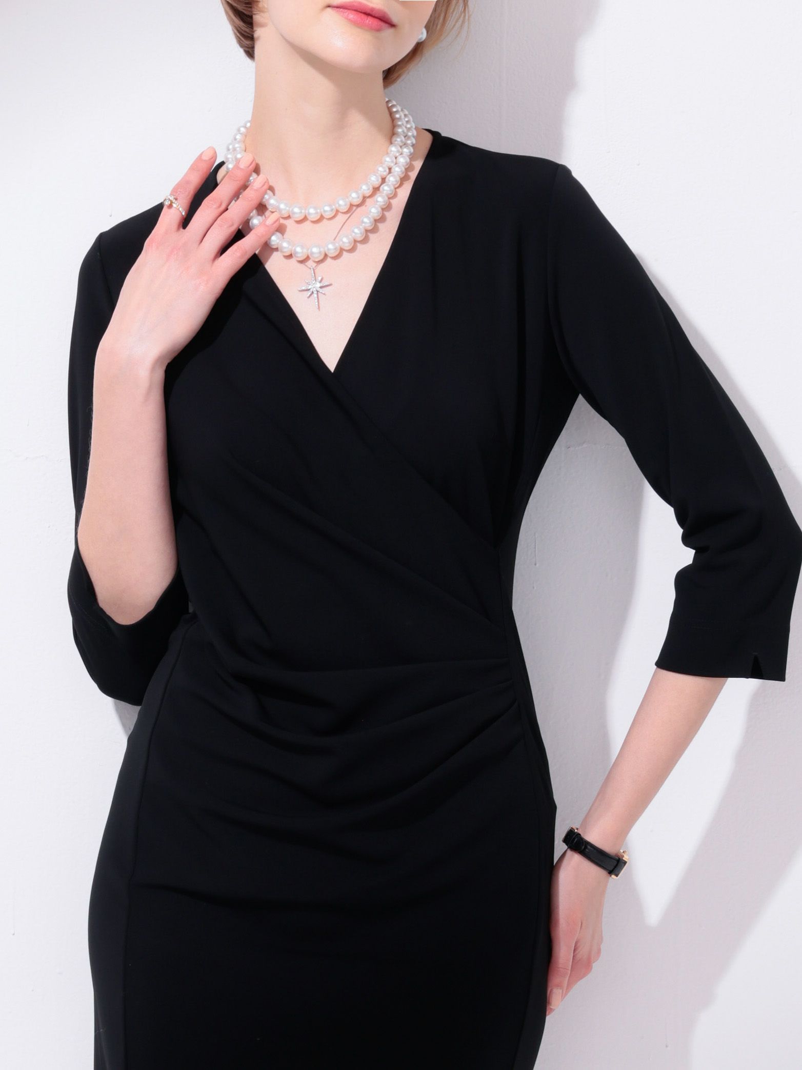 フォーマルからパーティーシーンまで活躍する万能ブラックドレスです。
