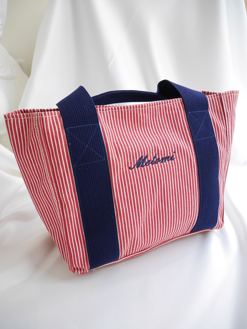 今回ご用意したオリジナルバッグはカジュアルなストライプ生地を使用。
