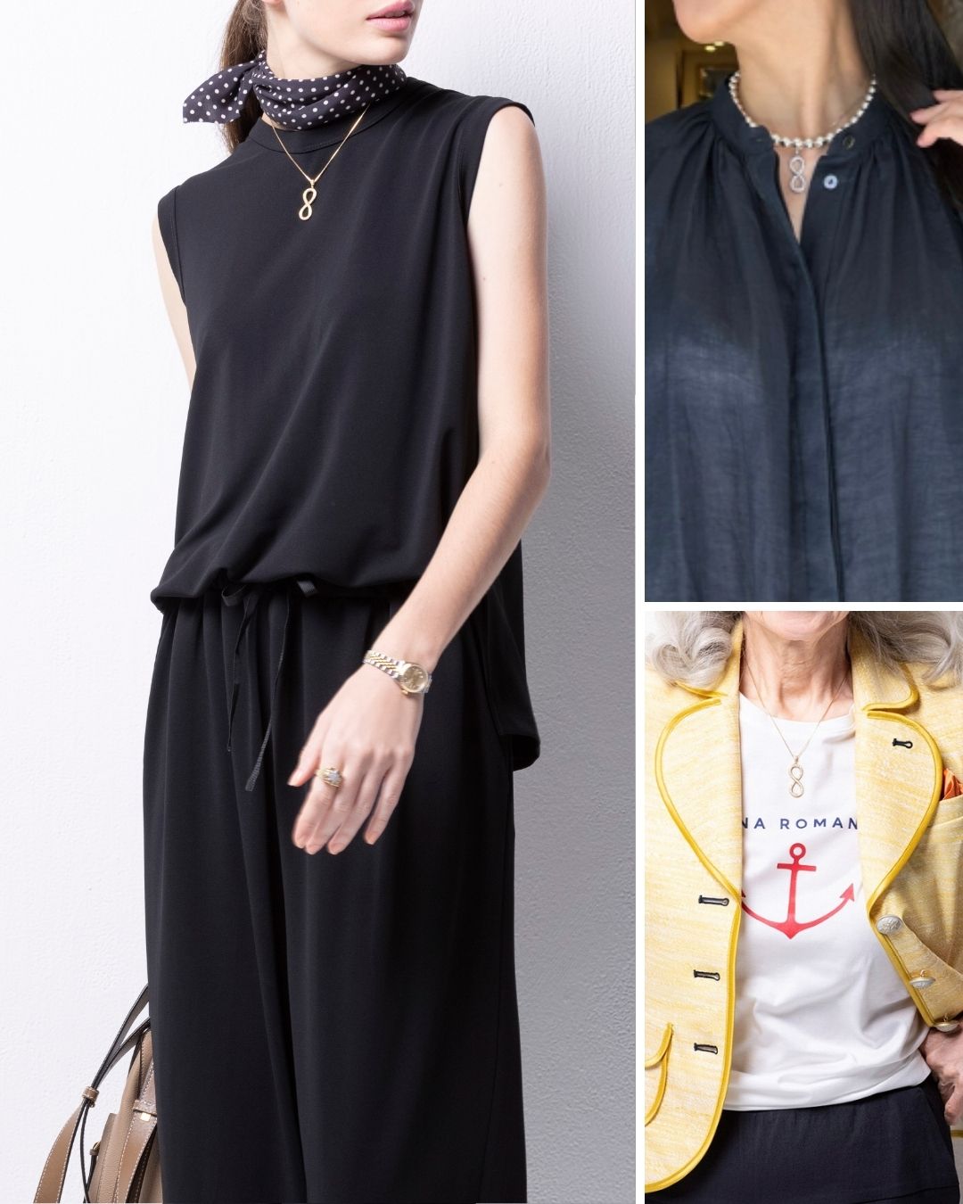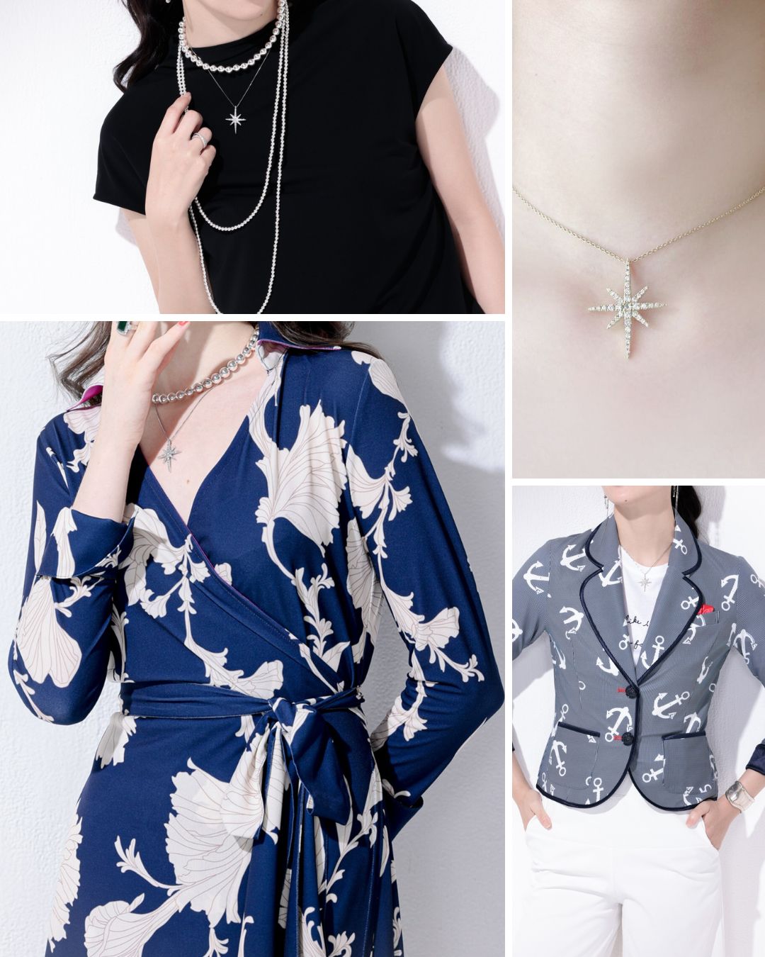 胸元にそっと輝くスターモチーフのペンダント。