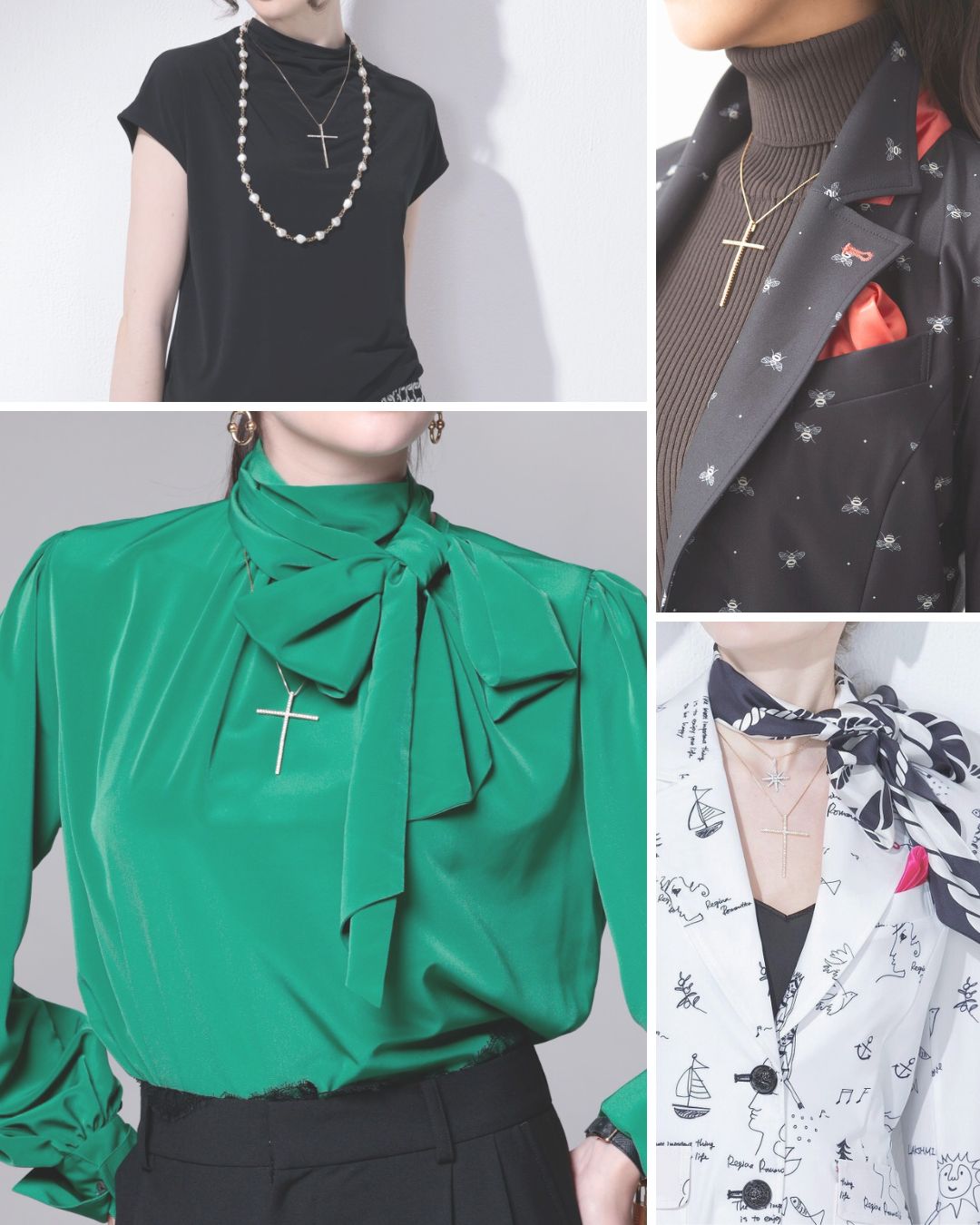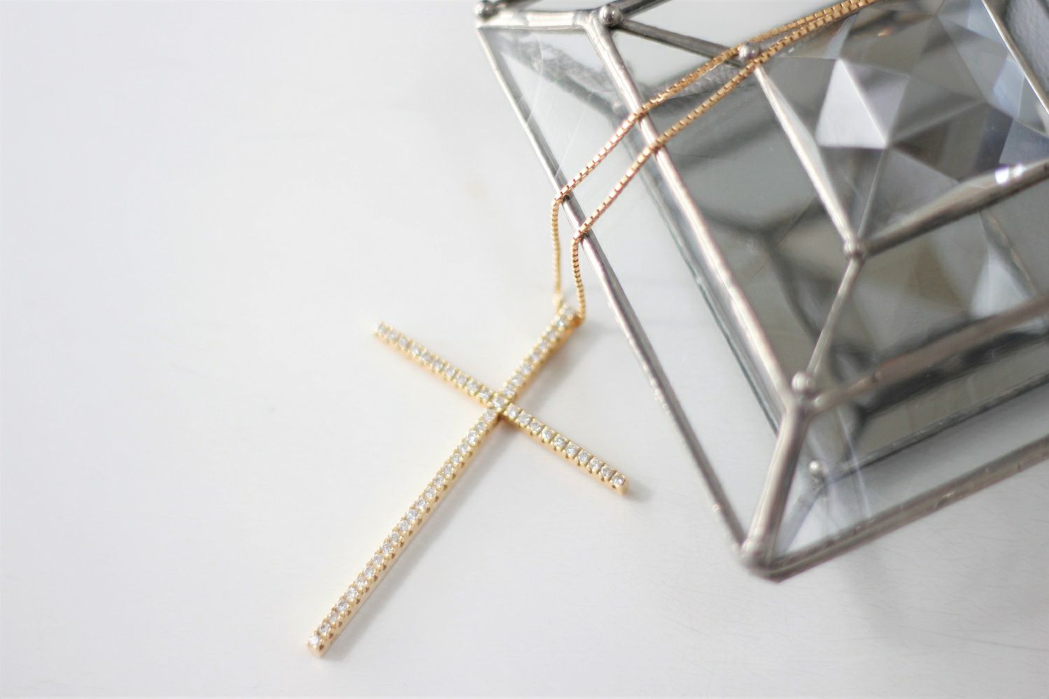 繊細な輝きと品格を宿したクロスネックレス。