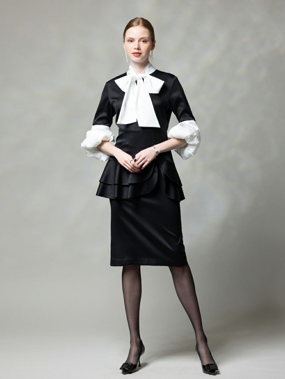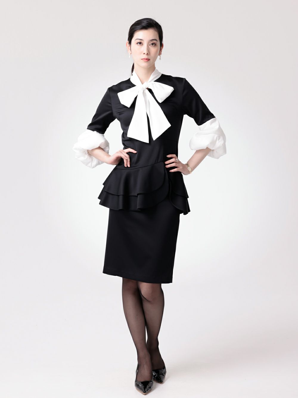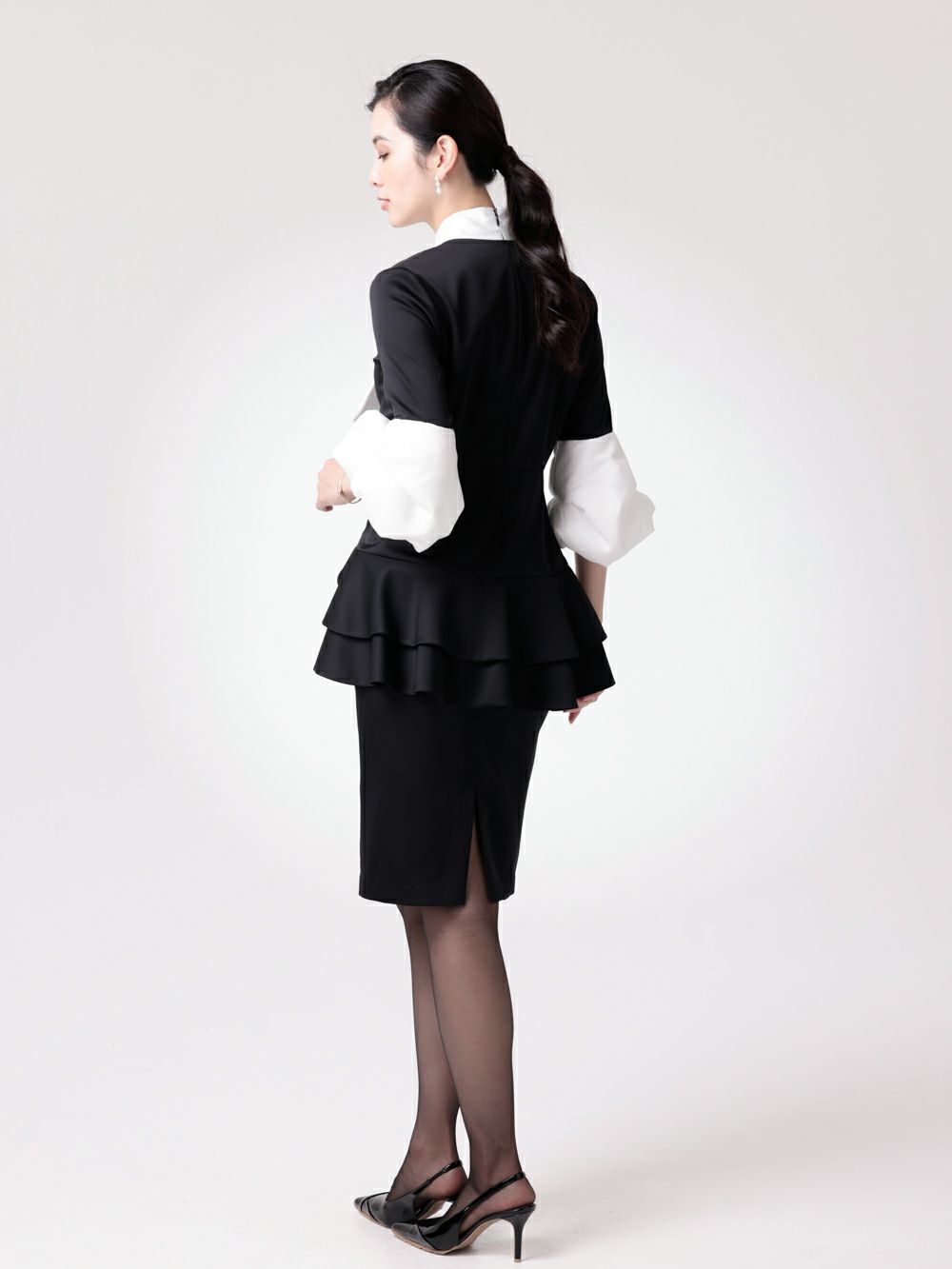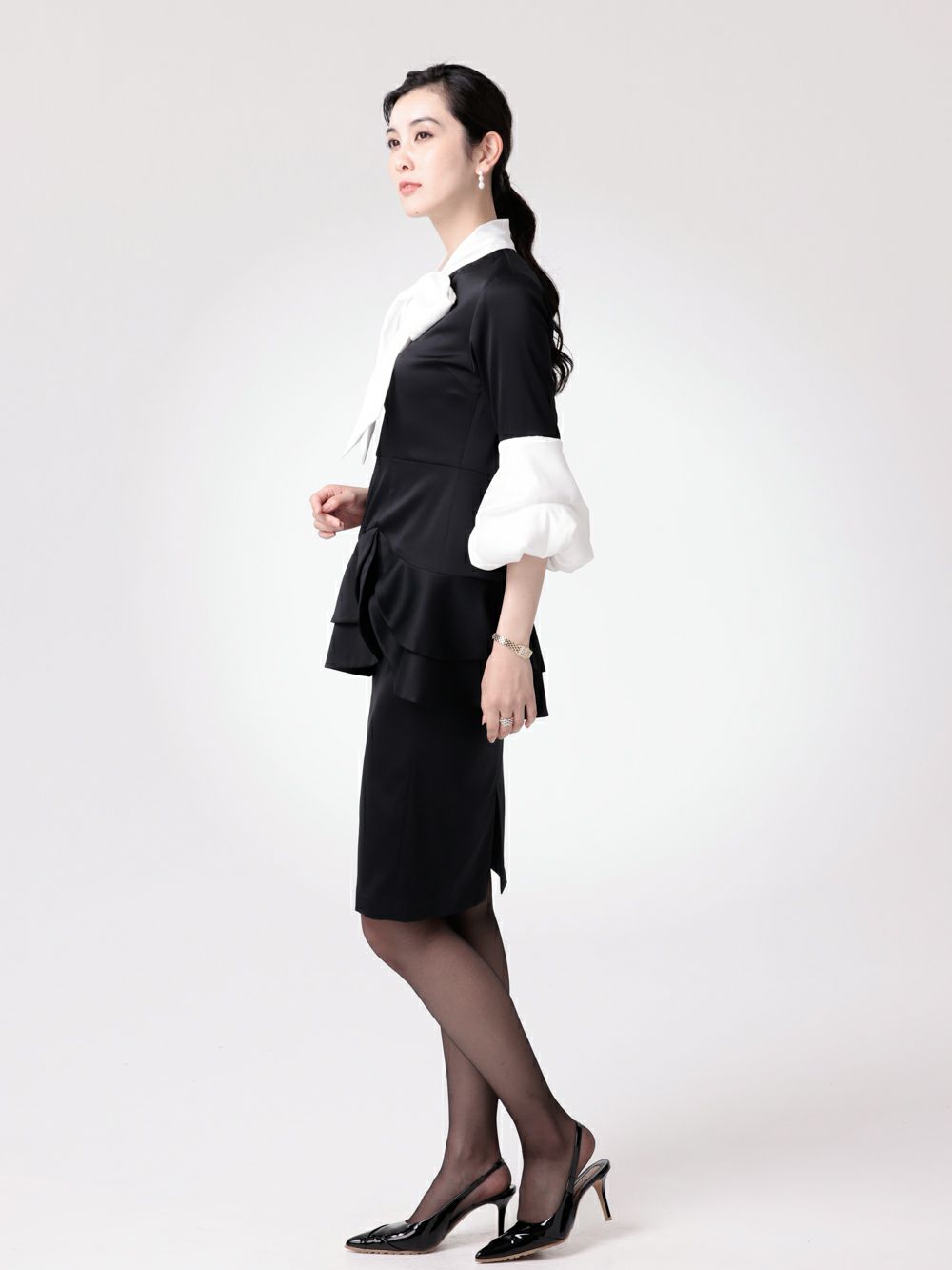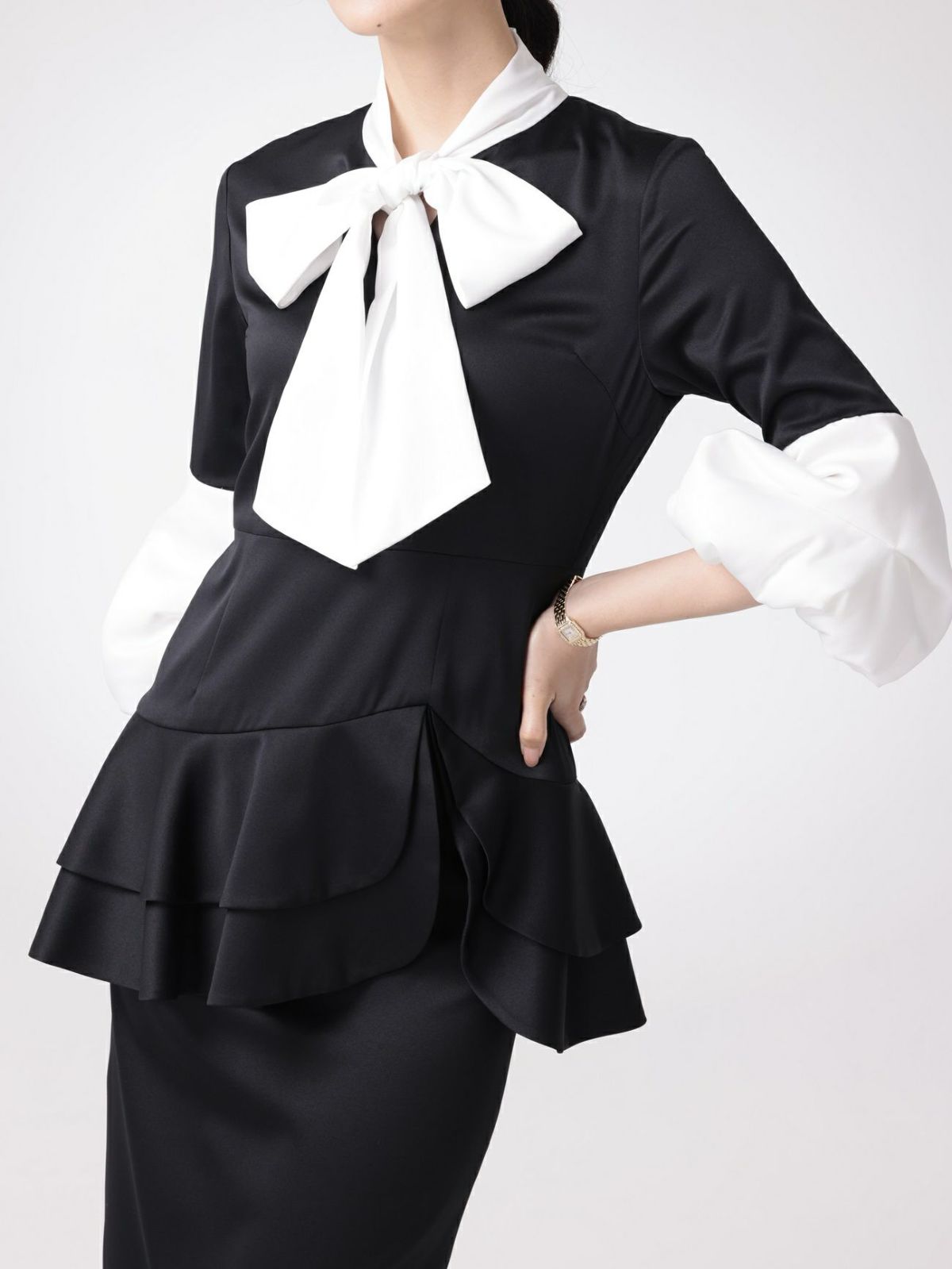 バイカラーパフスリーブワンピース