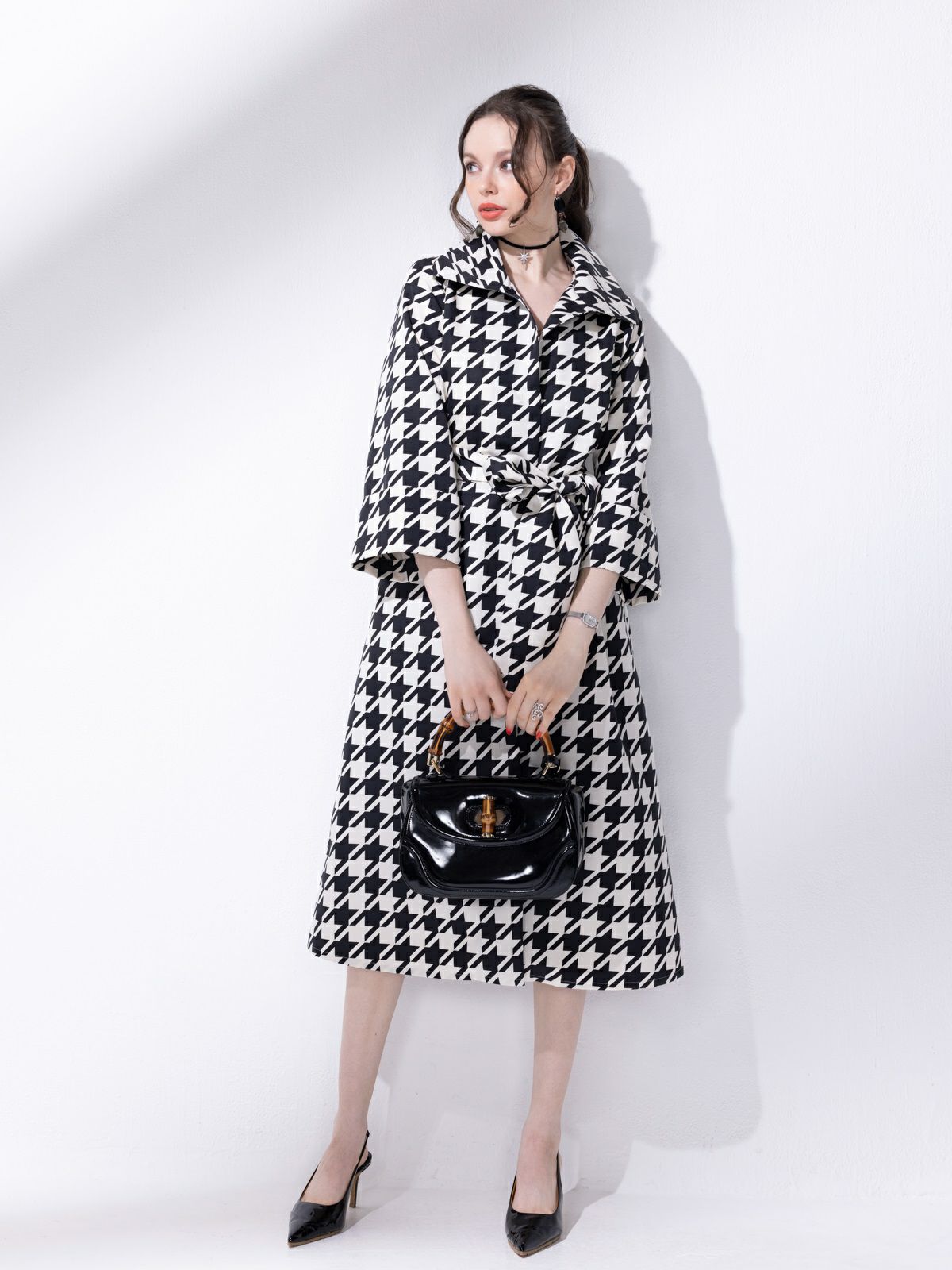 千鳥格子コートワンピース